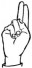 На ћирилици написано КОСТАДИН ВУЛОВИЋ састоји се из 15 слова [?]. Исписано ћириличном једноручном азбуком за глувонеме: